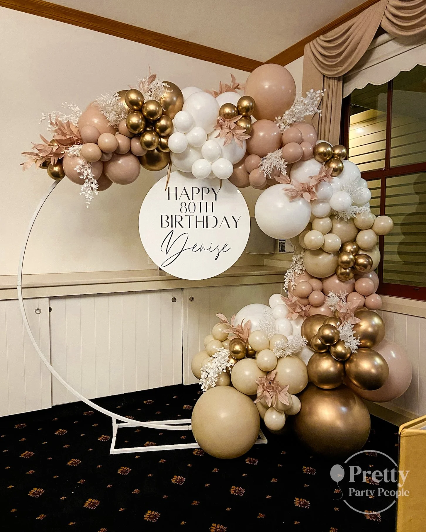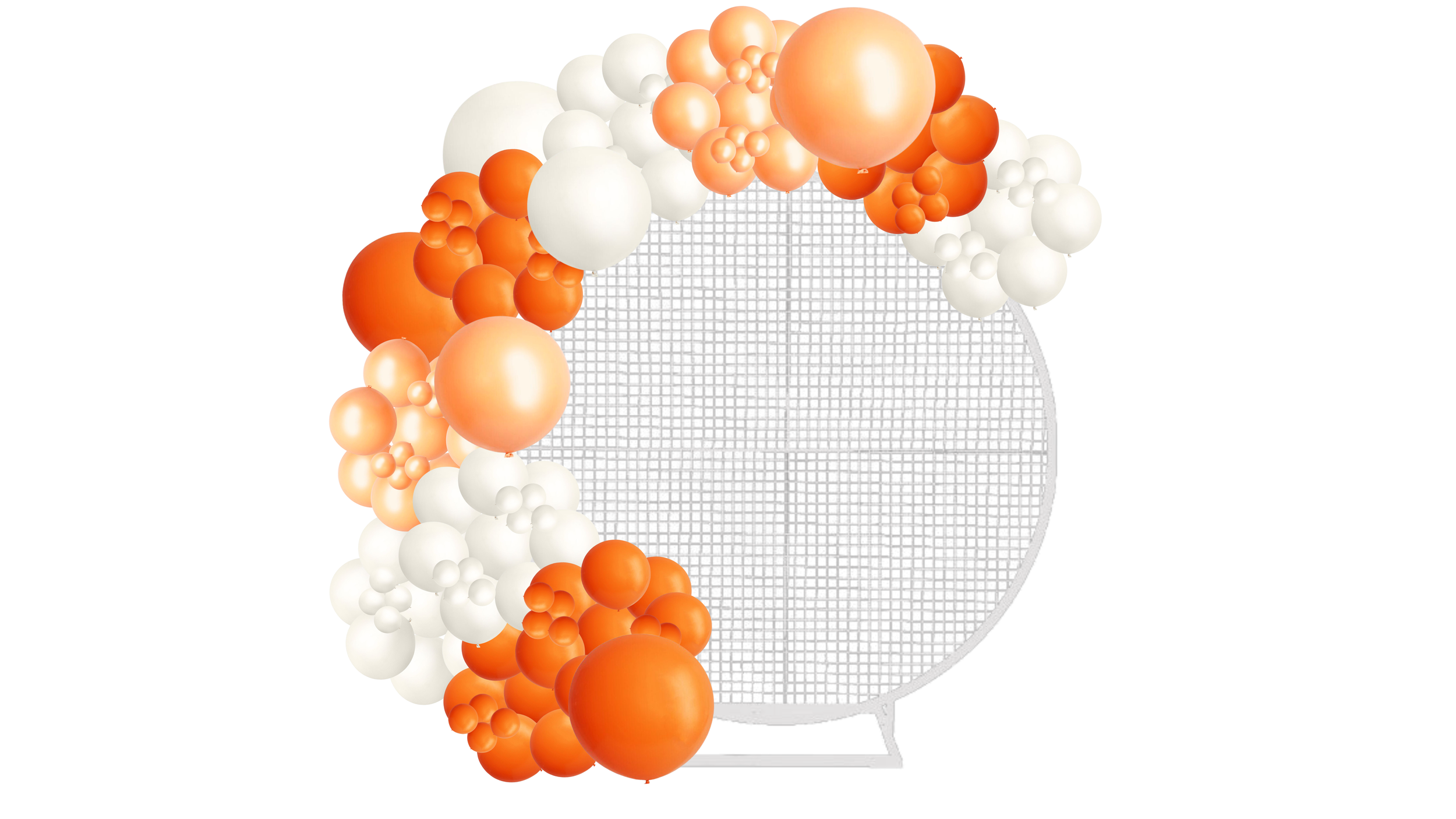 A simple and modern backdrop for photos. Our 2m Mesh Halo Ring styled with balloons or florals.